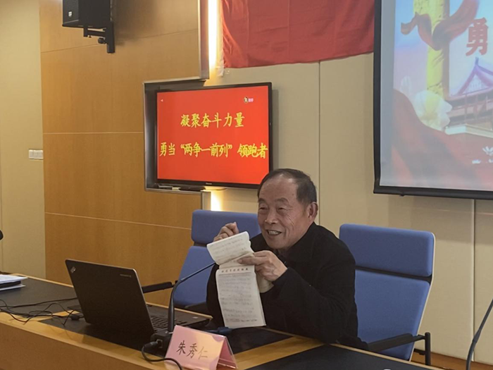 活动中八十二岁老党员朱秀仁讲述了公司发展的历程。当年,在一个遍地是柴草、温饱水平都达不到的穷苦村,党员自筹资金,白手起步办特种钢厂,到现在,公司产品成功助力大国重器“华龙一号”。“企业靠党起步、靠党发展、靠党壮大,现在,你们中有本科生,研究生,要比我们那一辈更强,我希望公司能在你们年轻的党员手上再创奇迹、再续辉煌。”朱老前辈的殷殷之语,让与会党员倍受鼓舞。