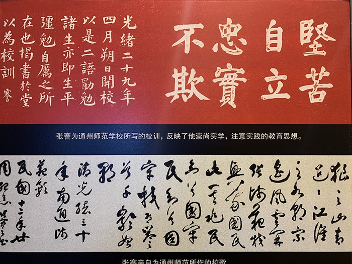 △张謇为通州师范学校所写的校训。(总台央视记者段德文拍摄)
